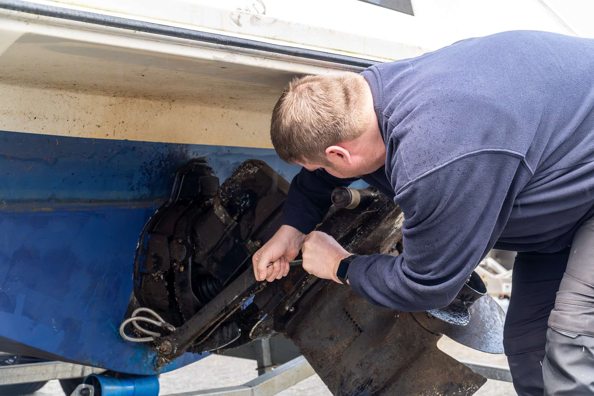 Seit Juni 2022 ist Michael Stover an zwei Tagen in der Woche bei CW Boating im Einsatz. Er hilft in der Werkstatt und erledigt dort z.B. Reparaturen am Motor oder trifft Vorbereitungen für die Neulackierung eines Bootes. Er ist auch bei Messen dabei und ist voll in dem mittlerweile 4-köpfigen Team integriert. „Mir gefällt die Arbeit sehr gut, ich freue mich immer sehr auf die beiden Tage bei CW Boating“, so Stover.