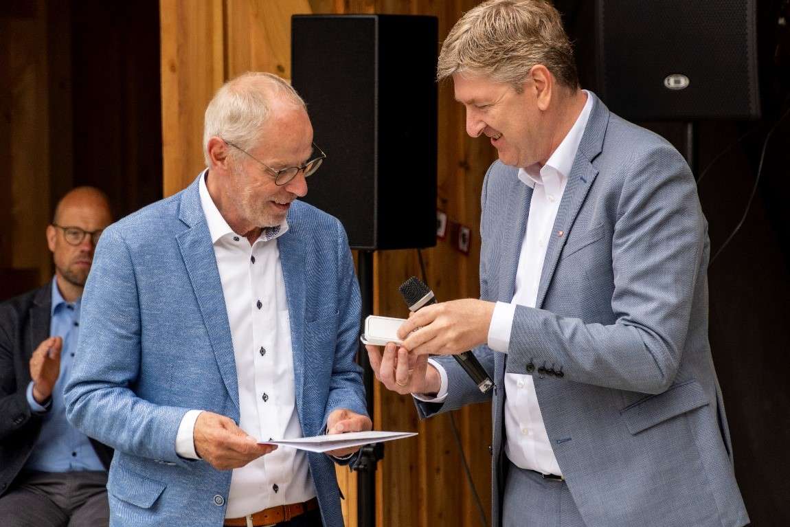 Auch die Kolleginnen und Kollegen aus dem Vitus Arbeitsbereich und dem Leitungsteam ließen es sich nicht nehmen, in emotionalen Vorträgen Abschied von Johannes Münzebrock zu nehmen. Zum Ende des offiziellen Teils bedankte sich Münzebrock innig bei seiner Familie und übergab wortwörtlich den Stab, in diesem Fall ein Pilgerstab, an seinen Nachfolger Christian Thien.