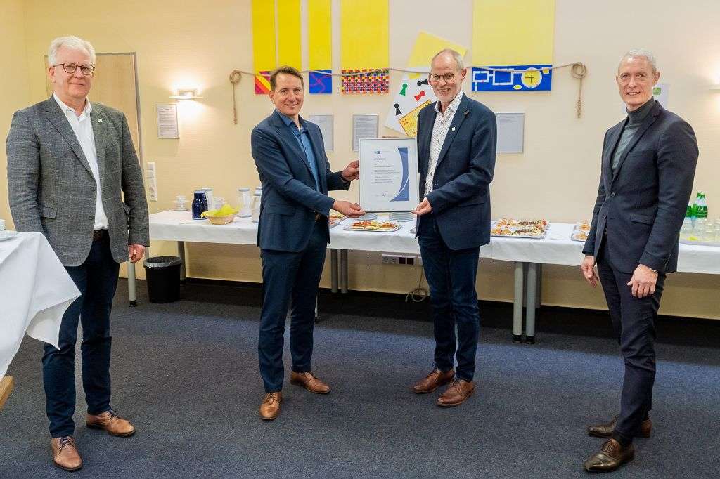 Beschäftigte aus den Vitus-Werkstätten haben künftig die Möglichkeit, sich nach einer zweijährigen Berufsbildungsmaßnahme als Hilfskraft im Gastgewerbe oder in der Lagerlogistik mit einem IHK-Zertifikat zu qualifizieren. Sie können so bei der Zubereitung von Speisen sowie im Service mitarbeiten bzw. werden bei der Wareneinlagerung und in der Warenausgabe eingesetzt. „Wir möchten Menschen mit Behinderungen zusätzliche Chancen geben, um auf dem allgemeinen Arbeitsmarkt Fuß zu fassen. Dieses Ziel steht hinter der neuen Kooperationsvereinbarung unserer IHK mit Vitus“, betonten IHK-Vizepräsident Thomas Kolde und IHK-Hauptgeschäftsführer Marco Graf. Beide überreichten bei einer kleinen Feier in Meppen die Kooperationsurkunde gemeinsam an die Vertreter von Vitus. Mit dabei waren auch vier Teilnehmer der neuen Bildungsmaßnahme, die von Ihrer Arbeit und den vielfältigen Aufgabenfeldern berichteten. Ab September können Sie sich dann zur offiziellen Prüfung anmelden.