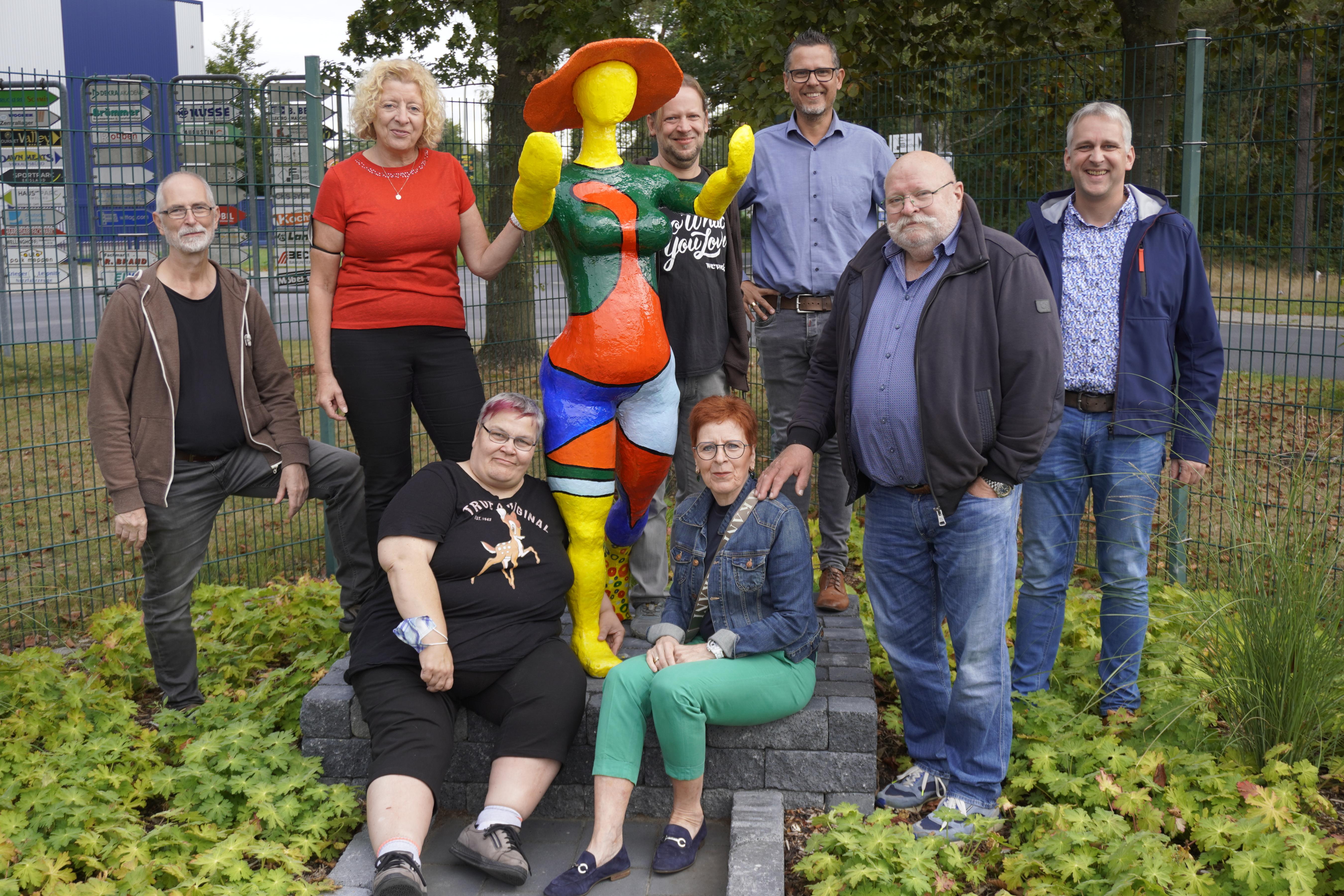 Ein wirklich einmaliges Kunstprojekt haben die Kunstgruppe des Meppener Lohnbetriebes, die Kunstschule im Meppener Kunstkreis e.V sowie die Künstlerin Mecky Mattern auf die Beine gestellt. Auf dem Gelände des Meppener Lohnbetriebes (MLB) glänzt ein „Vollwaib“ und empfängt die Beschäftigten, Mitarbeitenden und Besucher mit offenen Armen.