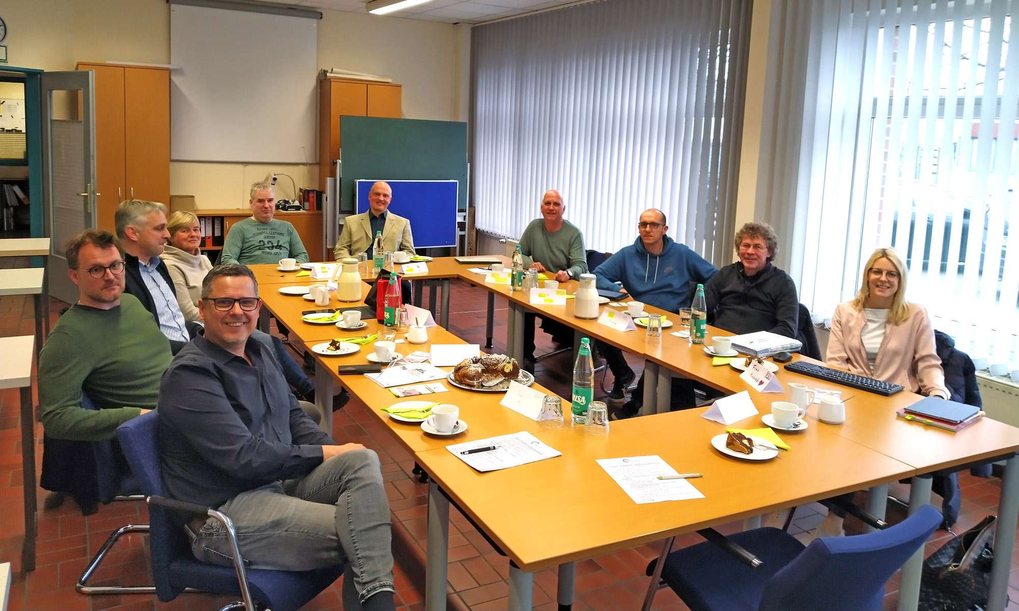 Am Mittwoch, den 22.03.2023, besuchten die Lehrer*innen des Vitus Teams der BBS Meppen auf Einladung ihres Kollegen und Teamleiters Herrn Dr. Kuhlmann den MLB (Meppener Lohnbetrieb, Vitus Werk, Schwefinger Str. 21a, Meppen). Herr Urbanek, der pädagogische Leiter der Einrichtung, stellte die Räumlichkeiten sowie Kaffee und Kuchen bereit. Die Runde der Teilnehmenden wurde um Mitglieder der Schulleitung der BBS Meppen und den pädagogischen Bereichsleiter sowie den Kompetenzfeldleiter des Vitus Werkes ergänzt.