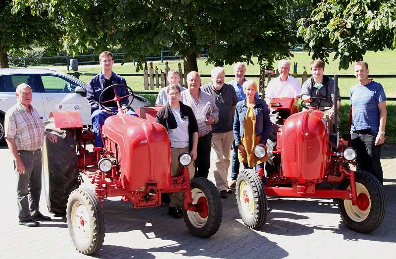 Bereits im Frühjahr 2012 rollte der erste Traktor „Porsche-Junior“ auf Gut Kellerberg in Haren an. Nun möchte Vitus den dritten Traktor restaurieren. Einrichtungsübergreifend arbeiten Schüler aus dem Berufsvorbereitungsbereich der Jakob-Muth-Schule sowie Beschäftigte der Vitus Werkstätten an dem Porsche-Projekt: Ziel ist es, mit dieser Maßnahme bei allen Beteiligten Teamfähigkeit, Durchhaltevermögen, Geschick und Improvisationsvermögen zu fördern. „Damit werden Kompetenzen gestärkt, die auch in der schulischen und berufsbildenden Arbeit vor Ort täglich benötigt werden“, erklärte Clemens Dickebohm, Bildungsbegleiter, bei dem Treffen auf Gut Kellerberg. Die Anschaffung des dritten Modells erfolgte durch die freundliche Unterstützung von Hermann Willenborg, Bürgermeister der Gemeinde Esterwegen, sowie Heinrich Otten, Gemeinderatsmitglied in Esterwegen.
