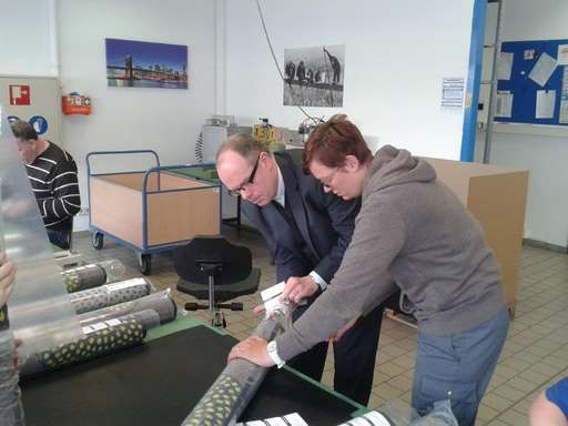 Im Rahmen seines Besuches der Vitus Werkstätten am 29.04.2015 tauschte Weihbischof Johannes Wübbe für einige Stunden sein Amt in der Leitung des Bistums Osnabrück mit der in der Werkstatt. Der Weihbischof hatte im Vorfeld explizit darum gebeten, Beschäftigte in ihren täglichen Aufgaben begleiten und unterstützen zu dürfen. Am Standort Tecpark hat er dann u. a. im Bereich Verpackung tatkräftig mit angepackt. Auf beiden Seiten gab es keinerlei Berührungsängste. Den angebotenen „Blaumann“ hat Weihbischof Wübbe dankend abgelehnt. Holger Urbanek, pädagogischer Bereichsleiter, und Stefan Walter, technischer Leiter des Standortes im Meppener tecpark, erläuterten dem Besucher das Aufgaben- und Dienstleistungsspektrum sowie die Möglichkeiten einer Qualifizierung zum Handwerksgehilfen. An dem Standort sind derzeit 60 Beschäftigte tätig. Im Anschluss an den Besuch im tecpark gab es noch einen Gesprächsaustausch mit dem Geschäftsführer und den Kompetenzfeldleitungen des Trägers sowie einen Wortgottesdienst für Beschäftigte und Mitarbeiter in der Kantine der WfbM an der Zeissstraße.
