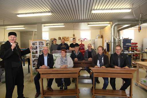 Alte Zeiten in Erinnerung halten – dabei unterstützt der Berufsbildungsbereich auf Gut Kellerberg die Stadt Meppen und die Tourist Information Meppen (TIM). Insgesamt acht Schulbänke fertigen die Werkstattbeschäftigten unter der Leitung von Gruppenleiter Tobias Lampen für die Alte Schule in Bokeloh. Nun wurde auf den ersten zwei Bänken unter Aufsicht von Schulmeister Karl-Heinz Stahl Probe gesessen. „Die große Herausforderung war der Zuschnitt und die Maßhaltigkeit, damit alle Bänke gleich aussehen", berichteten die Teilnehmer des Berufsbildungsbereichs Kevin Gels und Daniel Müller.
