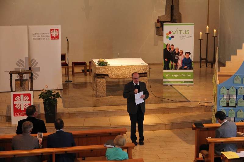Im Turnus von zwei Jahren – dieses Jahr bereits zum 10. Mal – findet der Caritas Tag der Behindertenhilfe in Niedersachsen an wechselnden Standorten statt. Im Rahmen der Feierlichkeiten des 50-jährigen Bestehens trat Vitus als Gastgeber auf. Marco Strodt-Dieckmann, Kompetenzfeldleiter Wohnen und Lebensgestaltung bei Vitus, und Dr. Cornelia Kammann vom Diözesan-Caritasverband Osnabrück führten durch die Veranstaltung.