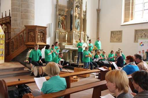 Zum Ende des Tages fanden sich alle Beteiligten in der Propsteikirche Meppen ein. Hier wurde über das Erlebte gesprochen und das Teilhabehaus vervollständigt. Musikalisch begleitet wurde die Abschlussveranstaltung durch die Gruppe Solo & Tutti. „Eine tolle Veranstaltung, Meppen hat sich von seiner besten Seite gezeigt“, resümierte Propst Dietmar Blank und sprach den Segen.