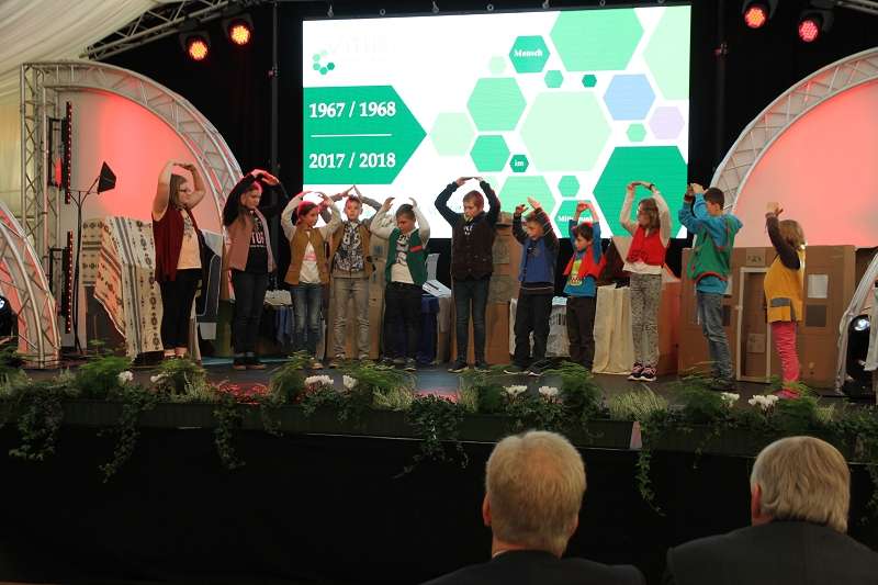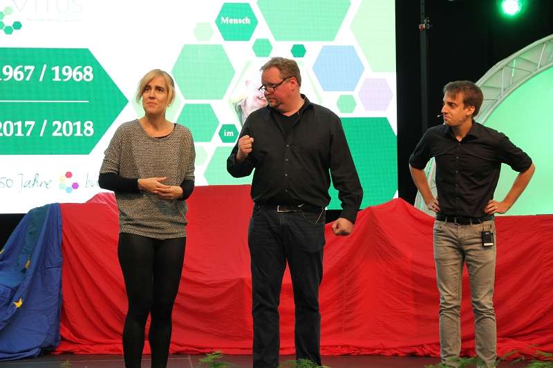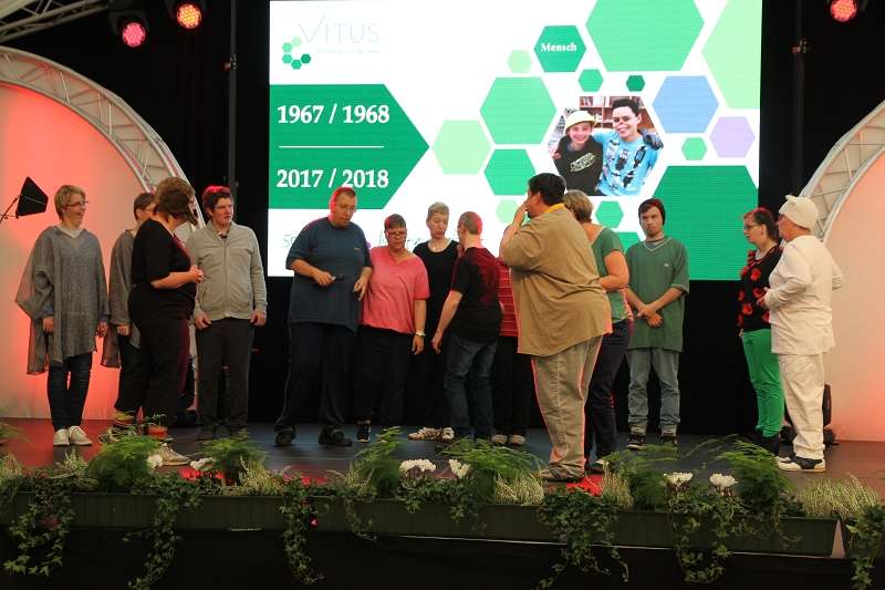 „Bunte Vielfalt Mensch“ mit diesem Lied eröffnete der Vitus Jubiläumschor den Festakt. Unter dem Jubiläumsmotto „50 Jahre bunte Vielfalt“ führte Clemens Nietfeld von der Theatergruppe Improteus aus Osnabrück als Moderator weiter durch das Programm. Dr. Gerhard Knoll, Vorsitzender der Vitus Trägerstiftung, und Vitus Geschäftsführer Michael Korden erklärten dem Publikum, warum man an diesem ganz besonderen Tag zusammengekommen sei. „Ohne das ehrenamtliche und finanzielle Engagement zahlreicher Unterstützer und Spender wären viele Projekte oder auch Ausstattungen für mehr Lebensqualität und Teilhabe nicht möglich gewesen. Korden betonte zudem, wie wichtig Netzwerkarbeit für die Einrichtungen der Behindertenhilfe und insbesondere für die Menschen mit Behinderung sei.