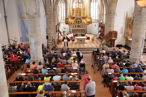 „Seit 50 Jahren sind wir miteinander auf dem Weg“, so begrüßte Propst Dietmar Blank die etwa 500 Gäste zum Vitus Auftaktgottesdienst in der Propsteikirche in Meppen. Oft sei der Weg ein guter Weg gewesen, man habe viel miteinander gesungen und gelacht. Gemeinsam mit Pastor Ralf Krüger und Diakon Jürgen Scholz zelebrierte Propst Blank die Gottesdienstfeier.