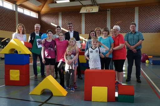 Seit zwei Jahren treffen sich einmal wöchentlich Kinder und Jugendliche mit und ohne Behinderung, um gemeinsamen Sport zu treiben. Das qualifizierte Trainerteam mit Veronika Vieth, Angelika Behnen und Alina Disselborg gestaltet die wöchentliche Übungsstunde und gab den Gästen einen Einblick in ihre Arbeit. „Kein Leistungsgedanke, sondern der Spaß an der Bewegung steht absolut im Vordergrund. Jeder macht so gut mit, wie er kann. Das Lachen der Kinder innerhalb einer Übungsstunde ist das Schönste und Wichtigste für uns“, betonte das Übungsleiterteam einhellig die Zielsetzung des Angebotes.
