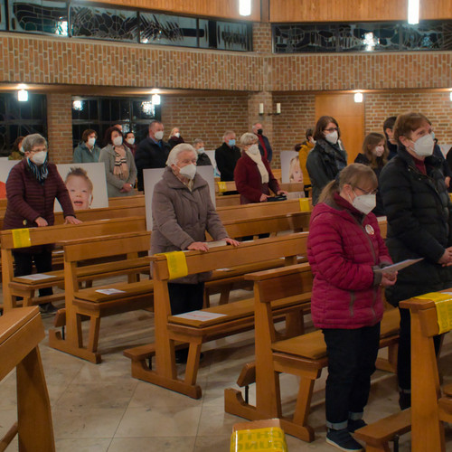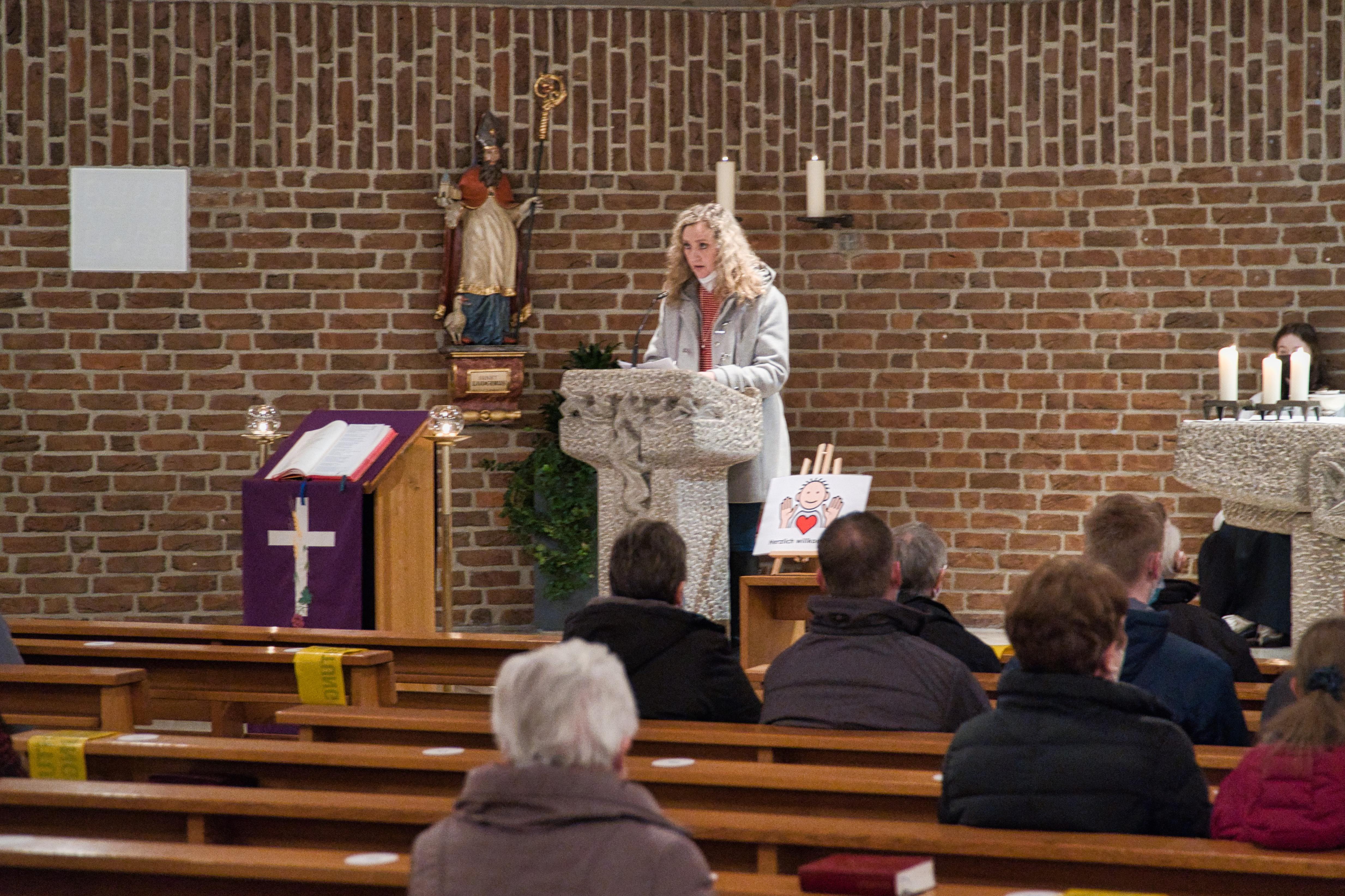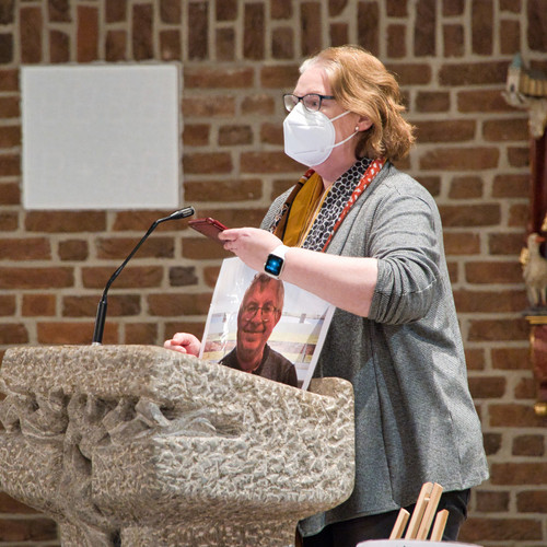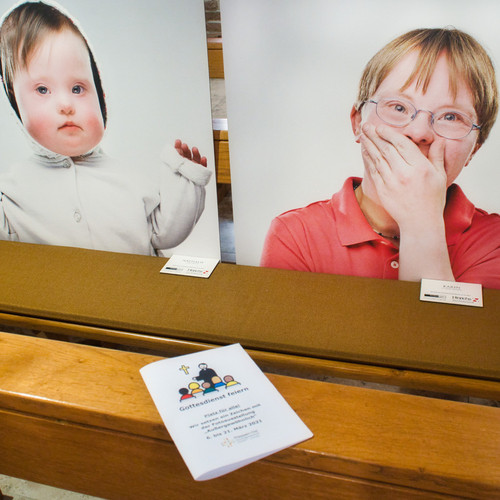 Die fehlenden sozialen Kontakte während der Corona-Pandemie sind in vielen Lebensbereichen belastend. Für die Inklusion bedeutet die aktuelle Situation einen großen Rückschritt. Menschen mit Behinderung leiden unter den wegbrechenden festen Strukturen in ihrem Leben. Da viele zur Risikogruppe gehören, müssen sie besonders vorsichtig sein. Die Teilhabe im Alltag bleibt da in großen Teilen auf der Strecke. Um auf dieses Problem hinzuweisen, hat die Pfarreiengemeinschaft Meppen-Ost gemeinsam mit Vitus die Aktion „Platz für alle“ ins Leben gerufen. Die Idee: Da aktuell jede zweite Bank in der Kirche freibleiben muss, nehmen auf den leeren Bänken Porträts von den Menschen Platz, die momentan nicht dabei sein können. Der Anstoß für die Aktion kam von Frau Meyer-Baltes und wurde von Familie Greskamp aus Bokeloh aufgenommen, die 2009 die Fotoausstellung „Außergewöhnlich“ mitgestaltet hatte. 21 Bilder von Menschen mit Downsyndrom aus allen Altersgruppen waren dabei entstanden und sind nun in der St.-Vitus-Kirche in Bokeloh in den gesperrten Bänken erneut ausgestellt. Zum Start der Aktion wurde am 6. März ein inklusiver Gottesdienst abgehalten. Das Vielfalter Projekt „Gelingende Kommunikation“ hat dabei geholfen, die Inhalte für alle verständlich aufzubereiten. So sind unter anderem die Lesung in einfacher und das Evangelium in leichter Sprache vorgetragen und Teile des Gottesdienstes mit Gebärden und sogenannten METACOM-Symbolen unterstützt worden. Ein bewegender Moment waren die von Herma Book, Stephan Pohlmann und Norbert Piekut formulierten und vorgetragenen Fürbitten. Alle drei sind Beschäftigte im Portum in Bokeloh. Ganz besonders war der Abend für Gabriele Greskamp, die an den Vorbereitungen des Gottesdienstes maßgeblich mitgewirkt hat. Anstelle der üblichen Predigt hat sie in einem berührenden Lebenszeugnis von ihren Erfahrungen als Mutter einer Tochter mit Downsyndrom berichtet und zur Gleichberechtigung und mehr Inklusion von Menschen mit Behinderung aufgerufen. Ihre Tochter Nane war an dem Abend gleich doppelt anwesend. Sie leistete als Messdienerin ihren Dienst, während das Porträt ihres zweijährigen Ich‘s in einer Bank ausgestellt war.