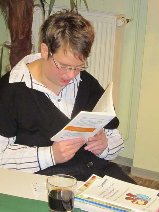 Ein interessiertes Publikum traf sich beim Info Cafe am Mittwoch, den 25.11.2014 in der Grünen Oase. Vier Frauen mit und ohne Behinderung lasen aus vier Büchern. „Ziemlich Beste Freunde“ war gleich allen Zuhörern bekannt, auch „Anne Frank“ gehörte zu den bekannten Büchern. Alexander Knurbein, ehrenamtliche Mitarbeiterin, las aus dem Buch „Der Familienblues“ vor, wo jeder schmunzelte oder auch mal laut lachte. Das Buch beschreibt Familiensituationen, die jeder kennt! Einige Zuhörer möchten mehr aus den Büchern hören. Ein Wunsch aus dem Publikum für die Beratungsstelle im kommenden Jahr. Daraus könnte sich ein Leseclub für an Bücher interessierte Leser und Nichtleser entwickeln