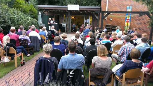 Zum dritten Mal fand in der Grünen Oase die Krimiautorenlesung von der Buchhandlung „Tatort“, in Kooperation mit dem Eltern u. Angehörigenbeirat statt. Passend zum Thema „Mord im Grünen“, machten es sich ca. 70 Personen im Garten der Oase gemütlich und lauschten den spannenden und humorvollen Kurzgeschichten verschiedener Autoren. Neben dem Team des Tatorts übernahmen auch einige Zuschauer Textpassagen und machten die Geschichten somit noch lebendiger.