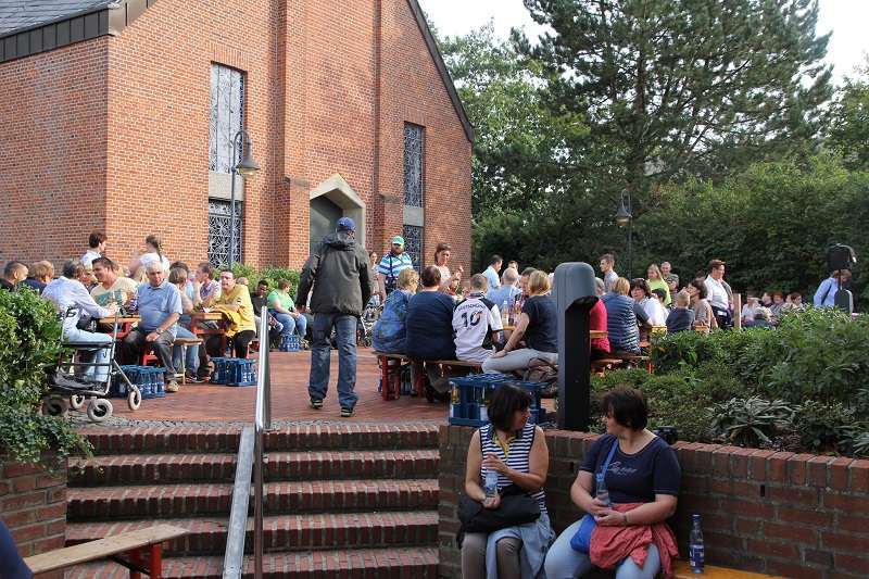 Die Endstation des Inklusionsspaziergangs bildete die Gustav-Adolf Kirche. Draußen konnten sich die Teilnehmer erstmal stärken. Die Abschlussveranstaltung zum Thema „Ankommen“ fand anschließend in der Kirche statt. „Mich an den schönen Dingen freuen und mich über die anderen nicht zu sehr zu ärgern, das ist für mich Leben“, so Pastor Ralf Krüger in seinem Grußwort.