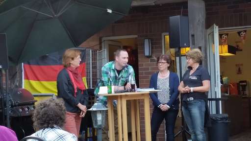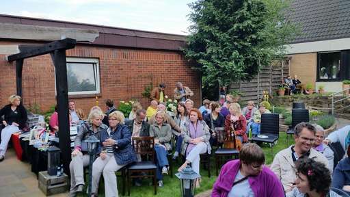 Passend zum Thema „Mord im Grünen“, machten es sich ca. 70 Personen im Garten der Oase gemütlich und lauschten den spannenden und humorvollen Kurzgeschichten verschiedener Autoren.