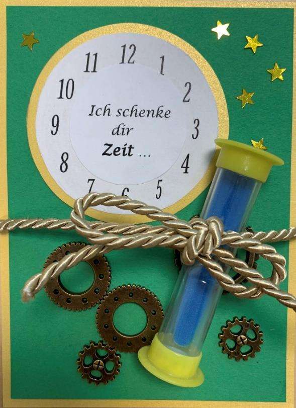 Die mitgelieferte Sanduhr möchte Sie dabei unterstützen, sich ganz bewusst am Tag mindestens fünf Minuten Zeit für sich und Ihre Liebsten zu nehmen. Zeit, um die Karte zu betrachten, nachzudenken, durchzuatmen.