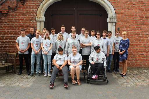 Johannes Münzebrock, Kompetenzfeldleiter für Berufliche Qualifizierung und Teilhabe am Arbeitsleben bei Vitus, erklärte, dass er sich auf die Arbeit mit den starken Nachwuchskräften freue. Im Berufsbildungsbereich der Werkstatt können sich die SchülerInnen ab September in handwerklichen und hauswirtschaftlichen Tätigkeitsfeldern qualifizieren. Auch die Vitus Akademie unterstützt einzelne SchülerInnen bei ihrem Einstieg ins Berufsleben. Mit einem kleinen Geschenk machte Herr Münzebrock deutlich, dass es im Leben sehr hilfreich ist, Halt zu finden und eine Orientierung zu haben. In diesem Jahr kleideten sich die Entlass-SchülerInnen zum ersten Mal mit Motto-T-Shirt und -Pullover ein. Auf der von Eltern und Angehörigen für den Abend geplanten „Aftershowparty“ konnten die SchülerInnen noch einmal, wie Stars, das Ende ihrer Schulzeit feiern.