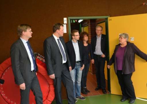 Beim Rundgang durch die Tagesbildungsstätte konnten die Gäste in der Grund-, Mittel- und Oberstufe den Schülern über die Schulter blicken und interessante Eindrücke gewinnen. Inklusion wird hier schon seit vielen Jahren erfolgreich praktiziert. „Das Modell der Kooperationsklassen an Grundschulen hat sich bewährt“, erläuterte Wittenbrink. Im vergangenen Sommer wurde dann ein Kooperationsvertrag mit der Johannesschule in Meppen geschlossen. „Aus den jahrelangen wöchentlichen Begegnungen in AGs ist nun eine Kooperationsklasse mit gemeinsamem Unterricht in verschiedenen Fächern geworden“, freut sich Wittenbrink über die praktizierte Inklusion.