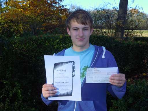Im Rahmen einer kleinen Siegerehrung des TV Meppen nahm Heiner Heskamp, stellvertretend für alle teilnehmenden Schüler, einen Gutschein im Wert von 50 € (gespendet von der Firma Mayrose) entgegen.