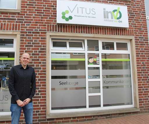 „Kommunikation ist die Grundvoraussetzung für Teilhabe und jegliche Aktivitäten des menschlichen Miteinanders“, so beschreibt Mats Barlage als neuer Beauftragter für Gelingende Kommunikation (GK) bei Vitus seinen neuen Arbeitsbereich. Im April 2019 bezog er mit seinen Kollegen von der Gemeindenahen Seelsorge sowie dem Palliativmanagement und der Gesundheitliche Vorsorgeplanung das neue Vitus „invO-Büro“ (inklusiv vor Ort) in der Ludmillenstraße 9 in Meppen.