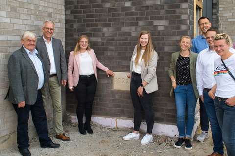 Am 9. Juli wurde auf der Baustelle unserer neuen Geschäftsstelle an der Nödiker Straße der Grundstein gesetzt. Da die Verwaltung in den letzten Jahren parallel zu den restlichen Vitus-Einrichtungen ordentlich gewachsen ist, kamen die Räumlichkeiten der aktuellen Geschäftsstelle an Ihre Grenzen. Daher freuen wir uns in der neuen GST auf funktionale und schöne neue Räumlichkeiten, in der die Mitarbeitenden auch perspektivisch ausreichend Platz finden. Als neuste Mitglieder unseres Teams durften nach erfolgreich abgeschlossener Ausbildung Laura Sandmann und Monya Kemper den Grundstein setzen. Der planmäßige Umzug in die neue Geschäftsstelle findet voraussichtlich Ende Oktober statt.