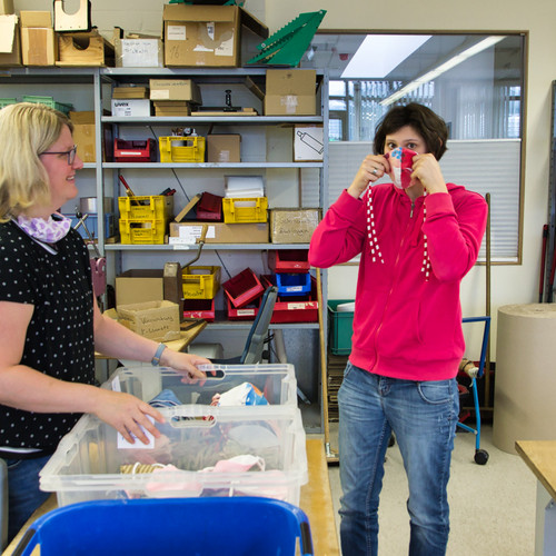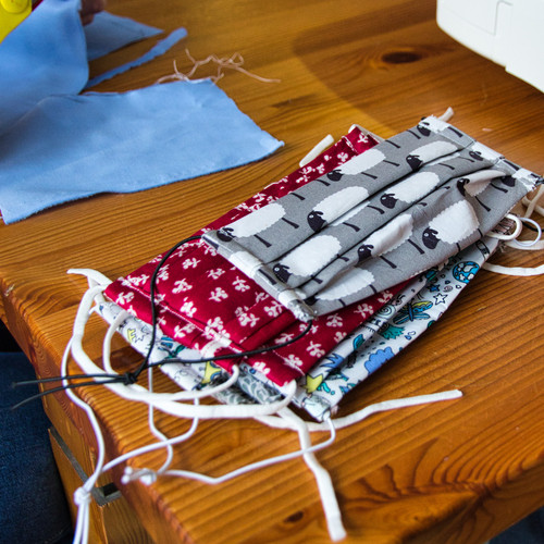 Die Nähmaschinen wurden an unterschiedliche Vitus Einrichtungen verteilt, darunter die Werkstatt-Standorte und verschiedene Wohnanlagen, in denen Teams aus Mitarbeitenden und Beschäftigten bzw. Bewohnern die Mund-Nasen-Bedeckungen gemeinsam herstellen. Insgesamt wurden schon mehrere Hundert Masken in verschiedenen Größen, Formen und Mustern gefertigt. Inzwischen ist die Produktion soweit angelaufen, dass nicht nur der interne Bedarf gedeckt wird, sondern Masken auch im Werkstattladen an der Zeissstraße 5 in Meppen zum Kauf angeboten werden können.