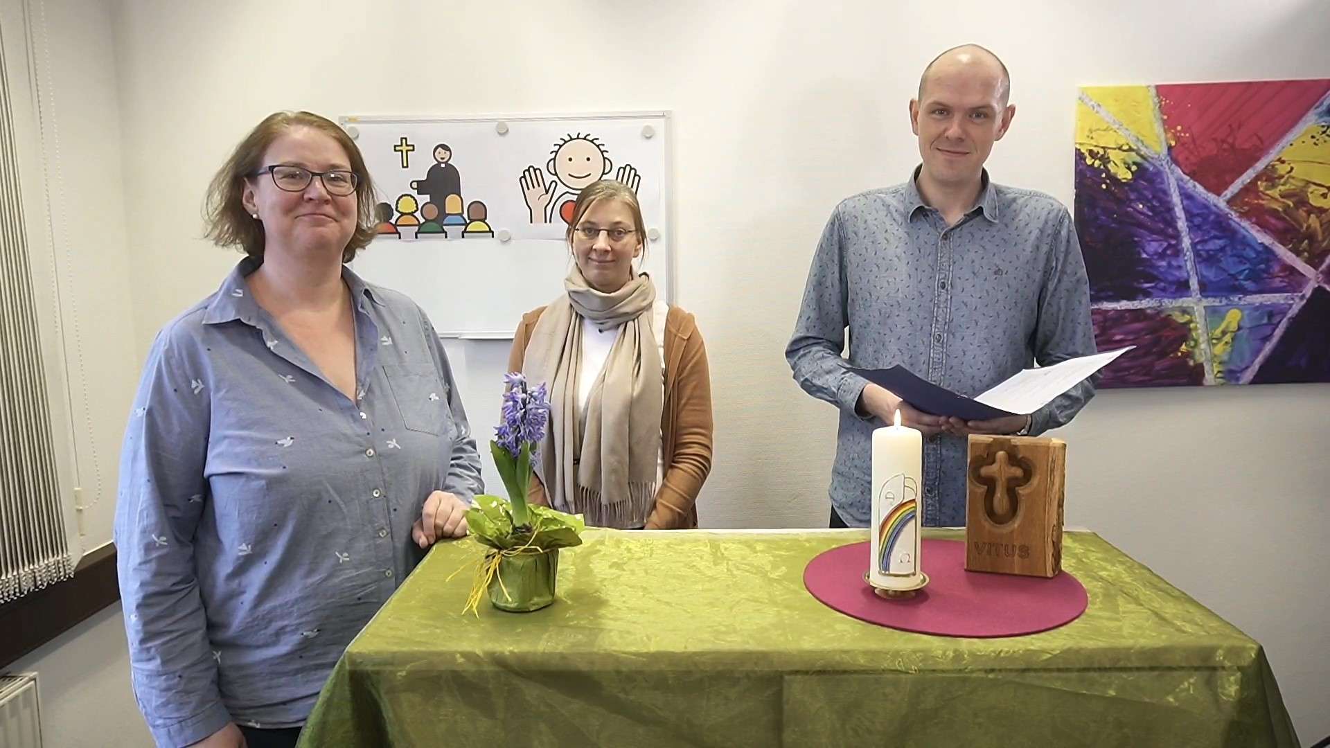 „Wir schaffen in den Wohneinrichtungen neue Tagesstrukturen und versuchen, durch kreative Aktionen für eine gute Stimmung zu sorgen“, so Korden. „Das gelingt uns recht gut, auch dank der großen Solidarität unserer Mitarbeitenden aus anderen Vitus Einrichtungen. Zum Beispiel haben die Kolleginnen und Kollegen aus der gemeindenahen Seelsorge und dem Projekt „Gelingende Kommunikation“ mit den „Lebenszeichen“ per Video für Abwechslung gesorgt, wichtige Impulse und Informationen gegeben und u.a. einen Ostergottesdienst veranstaltet. Zu den Videos in Leichter Sprache hat uns aus dem gesamten Bundesgebiet positives Feedback erreicht.“