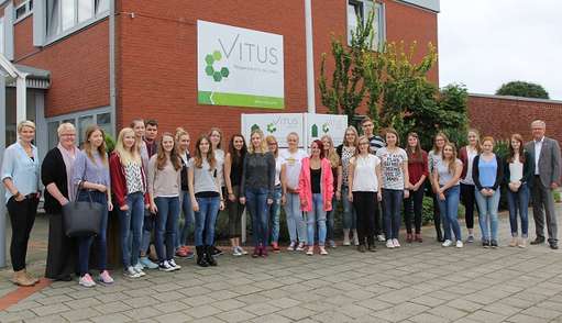Begrüßt wurden die Neuankömmlinge durch Vitus Geschäftsführer Michael Korden und Helga Magdanz, Bereichsleitung Personal. In einer Vorstellungsrunde erzählten die Teilnehmer von ihrem bisherigen Werdegang und erläuterten die Gründe, warum sie sich für den Freiwilligendienst entschieden haben. Weiter ging es mit der Vorstellung der Vitus Einrichtungen durch den Geschäftsführer. Hierbei wurde den Mädchen und Jungen schnell klar, dass die Arbeit mit Menschen mit Behinderungen Überraschungen bereithalten kann. Denn plötzlich stand ein Beschäftigter in der Tür und begrüßte die Gruppe freundlich. Die Einsatzbereiche der Freiwilligendienstler bei Vitus sind vielfältig: Ob Kinderbetreuung in der Krippe, dem Sprachheilkindergarten oder Kindergarten für Hörgeschädigte, Unterstützung der Lehrkräfte in der Jakob-Muth-Schule, Assistenz in der Werkstatt oder der Einsatz in den Wohnanlagen - die Teilnehmer können sich auf spannende Aufgaben freuen.