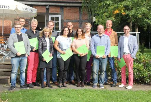 Mit Glückwünschen zum erfolgreichem Bestehen und der Übergabe der Teilnahmezertifikate schlossen Vitus Geschäftsführer Michael Korden und Franz Knist, Senior Coach DBVC, die Bereichsleiterqualifizierung im Café Koppelschleuse ab. Insgesamt zwölf Bereichsleiter haben von Februar bis September 2015 an dem Vitus internen Führungstraining teilgenommen.