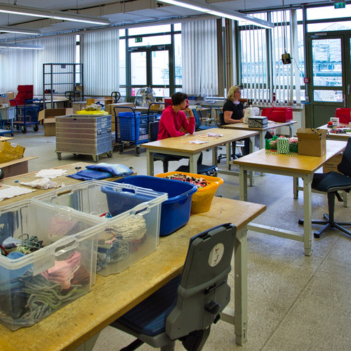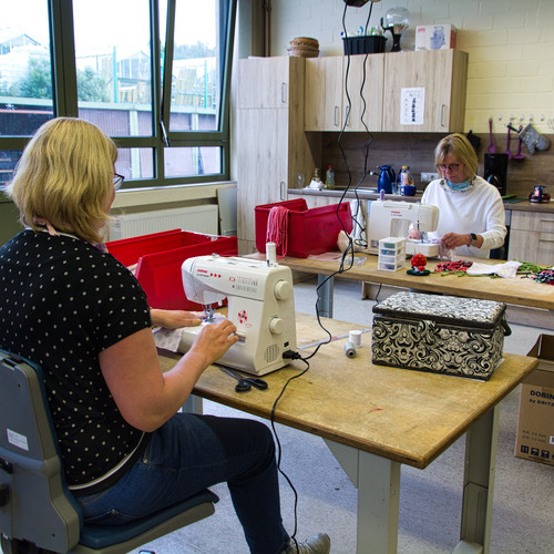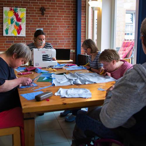 Die Nähmaschinen wurden an unterschiedliche Vitus Einrichtungen verteilt, darunter die Werkstatt-Standorte und verschiedene Wohnanlagen, in denen Teams aus Mitarbeitenden und Beschäftigten bzw. Bewohnern die Mund-Nasen-Bedeckungen gemeinsam herstellen. Insgesamt wurden schon mehrere Hundert Masken in verschiedenen Größen, Formen und Mustern gefertigt. Inzwischen ist die Produktion soweit angelaufen, dass nicht nur der interne Bedarf gedeckt wird, sondern Masken auch im Werkstattladen an der Zeissstraße 5 in Meppen zum Kauf angeboten werden können.