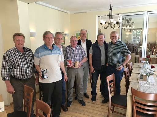 Bei ihren wöchentlichen Treffen tragen die Knobelbrüder Flechum so manche kleinere oder größere Münze zusammen. Werden die Sammelbehälter zu voll, übergeben sie diese seit über 40 Jahren den Vitus Vertretern für ihre Arbeit. In diesem Jahr konnte Vitus Geschäftsführer Michael Korden bei einem Treffen im Café Koppelschleuse einen Betrag von 767,04 € entgegen nehmen.