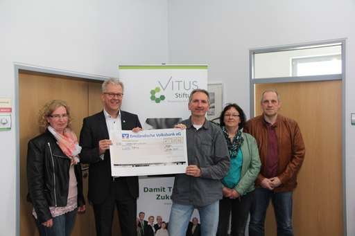 Mittlerweile hat es schon Tradition, dass auf dem Keglerball im Rahmen der Meppener Stadtmeisterschaften Spenden zur Förderung der Teilhabe von Menschen mit Behinderung gesammelt werden. So war es auch in diesem Jahr. Nachdem bereits der ehemalige Meppener Bürgermeister, Heinz Jansen, in Vertretung für die Vitus Stiftung, den 160 Keglerinnen und Keglern vor Ort für die großzügige Spende und jahrelange Unterstützung dankte, folgte nun die offizielle Scheckübergabe. Ein Abordnung der teilnehmenden Kegelclubs überreichte den Scheck dem Vitus Geschäftsführer Michael Korden. In diesem Jahr kam ein Betrag von 817,42 € zusammen. „Wir bedanken uns herzlich für die Spende und hoffen, dass Sie uns auch weiterhin unterstützen“, so Korden im Gespräch mit den anwesenden Keglerinnen und Keglern Angelika und Roland Stöppelkamp sowie Birgit und Heiner Beckmann, alle Mitglieder des Siegerclups „Willi`s Eleven“.
