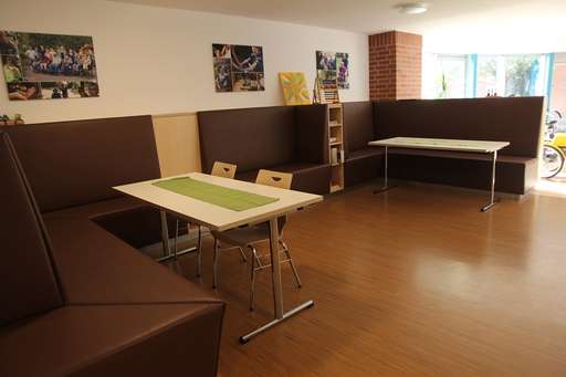 Dazu sollte in der Werkstatt ein Kommunikationsbereich gestaltet werden, der vielfältige Nutzungsmöglichkeiten schafft – ein Rückzugsort, an dem Entspannung und gleichzeitig gemeinsame Aktivitäten möglich sind. Die Vitus Stiftung unterstützte die Anschaffung einer integrierten Sitzlandschaft mit 4.200 Euro. Die Sitzlandschaft ist eine Kombination aus fest installierten Sitzbänken und Ordnungsfächern. Rollstuhlfahrer sowie körperlich eingeschränkte Menschen, die z.B. auf Gehhilfen angewiesen sind, benötigen beim Hin- und Umsetzen standfeste Sitzmöglichkeiten. Dies wird durch die neue Sitzkombination gewährleistet.