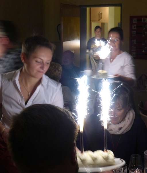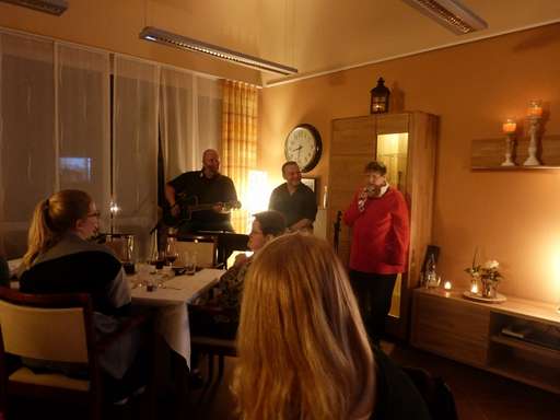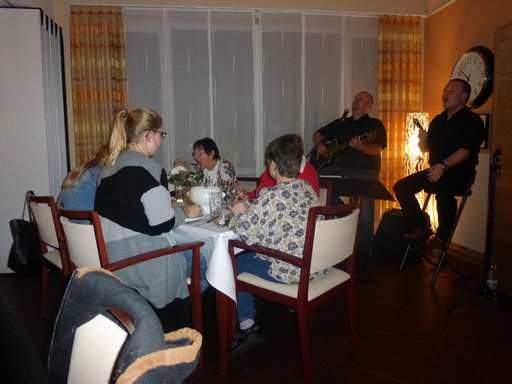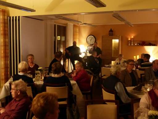 Neben festlich gedeckten Tischen und einem traditionellen 3-Gänge-Menü gab es in diesem Jahr Livemusik mit Werner und Dennis. Stimmungsvolle Klänge verschönten uns den Abend und begleiteten die Diashow im TV, die Ausschnitte aus den vergangenen 10 Jahren zeigte.