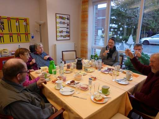 Den Ausklang machte eine gemeinsame Kaffeerunde mit selbstgebackenen Waffeln und jeder Tagesgast bekam als Erinnerung an den heutigen Tag eine Rose geschenkt.