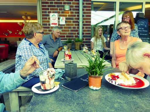 So haben wir uns überlegt, die Eisdiele in Maria Veen zu besuchen, die vom Benediktushof betrieben wird. Wie die Bilder zeigen, war es ein schöner Ausflug.