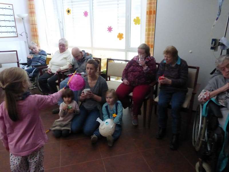 Am vergangenen Dienstag, 8.11.2016, haben uns die Kinder des Heilpädagogischen Kindergartens besucht. Voller Stolz präsentierten sie ihre selbstgebastelten Laternen und sagen durch unsere Reihen verschiedene Martinslieder. Damit zauberten Sie ein Lächeln auf die Gesichter unserer Tagesgäste, die auch kräftig mitsingen konnten. Gemeinsam mit den Kindern freuten sich dann alle über Kekse und Getränke. Zum Abschied wurde noch eine kleine Süßigkeiten als Dank ausgeteilt – ganz wie sich das für das Martinsfest gehört.