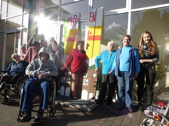Das Seniorenzentrum „Mittendrin“ entschied sich für das Motiv des Rathauses sowie für den hauseigenen Namen inklusive Handabdrücke.