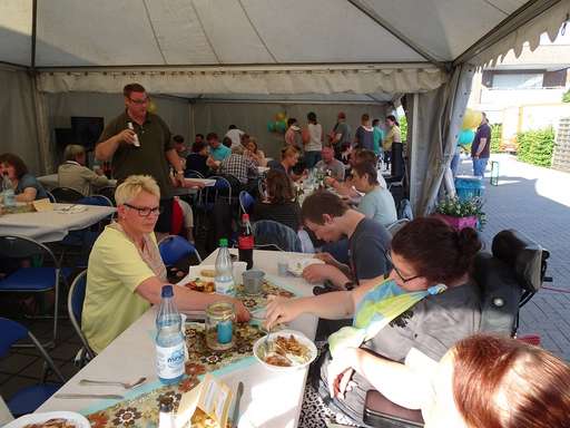 Das Wohntraining Deichstraße lud Eltern und Angehörige am 14. Juni zum jährlichen Grillfest ein. Bei herrlichem Sonnenschein wurden die Gäste begrüßt. Durch eine Bildergalerie wurde auf fünf Jahre Deichstraße zurückgeblickt. Die selbstgemachten Salate der Bewohner ließen sich alle schmecken. Auf Karten konnten alle Gäste und Bewohner der Deichstrasse ihre Wünsche für die nächsten fünf Jahre schreiben und zusammen ließen wir diese dann mit Luftballons steigen.