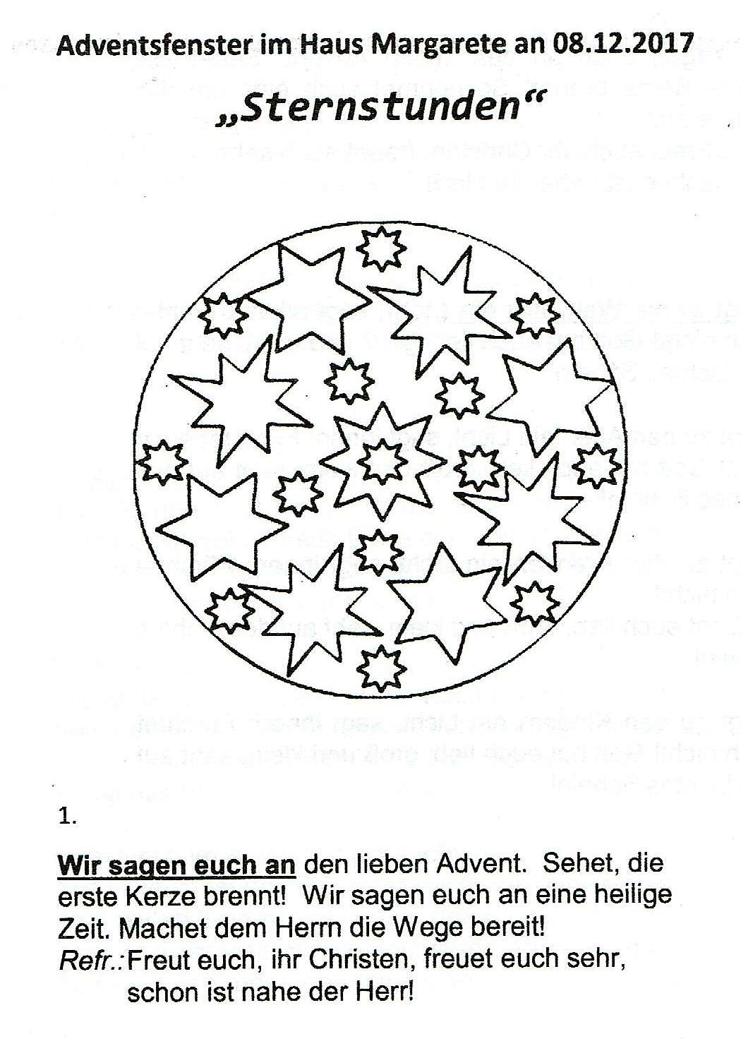Es wurden ein paar Gedanken zum Thema Sternstunden vorgetragen sowie weihnachtliche Lieder gesungen.