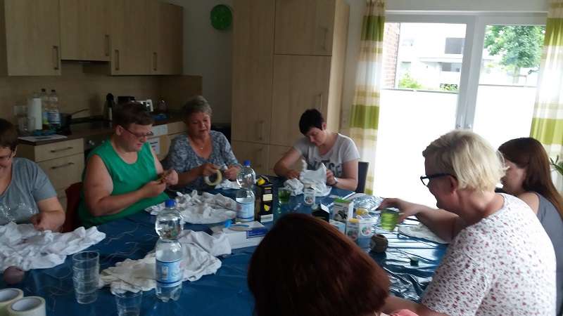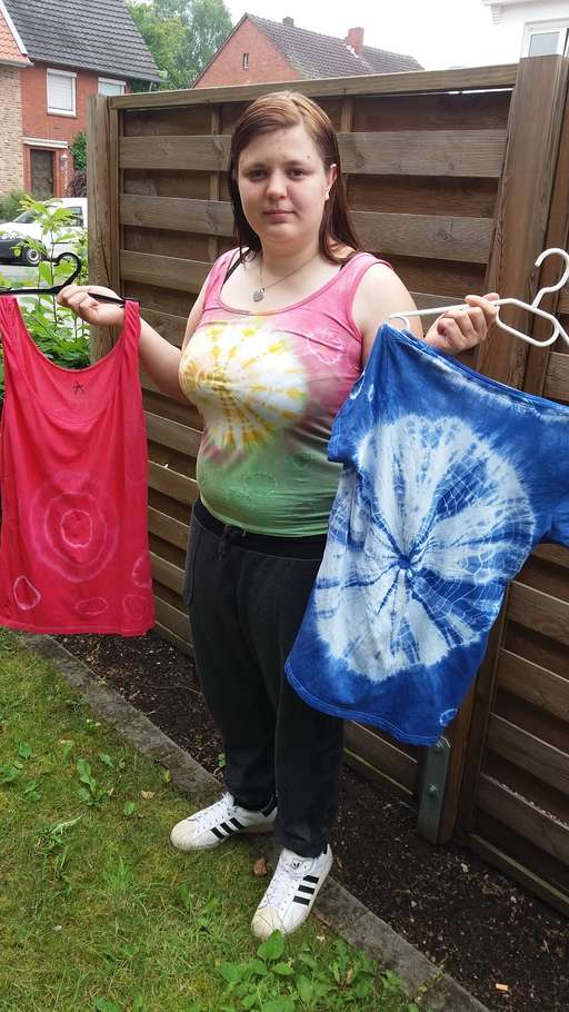 Ich liebe es kreativ zu sein und daher organisierte ich für die Bewohner und Mitarbeiter der Deichstraße einen Batik-Kurs. Jeder brachte sein eigenes T-Shirt mit und versuchte sich mit viel Motivation an die Batiktechnik.