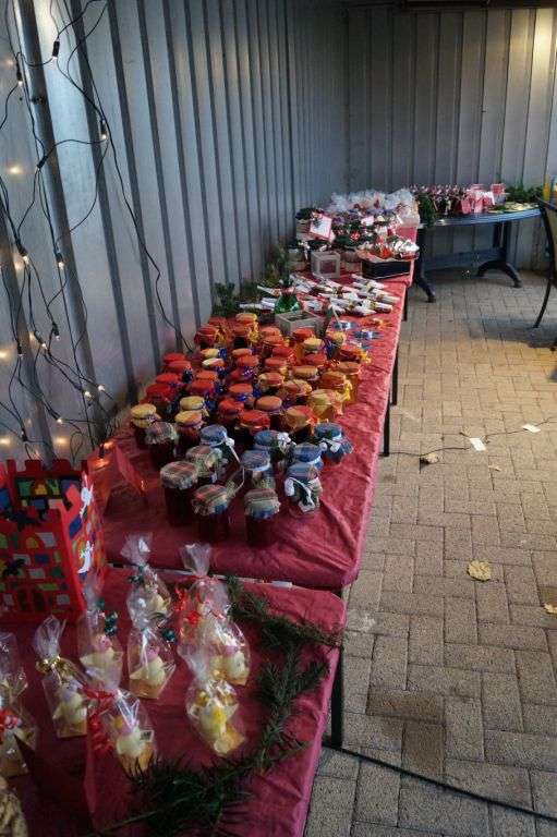Kaffee und Kuchen, einen tollen Basar mit vielen liebevoll selbstgemachten Sachen, warmen Glühwein und Punsch gegen die Kälte und Bratwurst vom Grill.