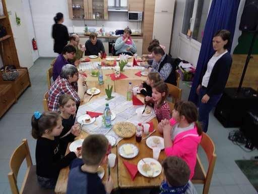 Im Rahmen eines sozialen Projektes der Erstkommunionvorbereitung besuchten auch in diesem Jahr eine Gruppe der Paulusgemeinde die Bewohner der Wohnanlage St Josef. Die Erstkommunion Kinder waren in Begleitung ihrer Katecheten gekommen um Gemeinsam mit den Bewohnern in Kontakt zu treten und Einblicke von ihrem zu Hause zu erlangen. Im Partykeller wurden Schmetterlinge gebastelt und anschließend gab es ein gemeinsames Abendbrot mit selbst gebackenen Brötchen. Bei einer anschließenden Hausbesichtigung erhielten die kleinen Besucher zudem einen Einblick in die Räumlichkeiten vor Ort und in die Wohnräume der Bewohner. Die buntgestaltete Schmetterlinge haben im Kaminraum einen Platz gefunden und können nun dort bewundert werden.