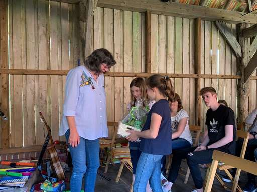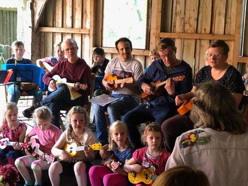 Andrea Jaspers-Egbers organisierte vor der Sommerpause ein Konzert an der Herrenmühle. Neben der Ukulelengruppe mit Bewohnern der Wohnanlage St. Josef hatten auch drei Kindergitarrengruppen und eine Kinderukulengruppe dort ihren Auftritt. Gemeinsam verzauberten die Musiker mit ihren breitgefächerten Darbietungen von „Bruder Jakob“, „Der Kuckuck und der Esel“, „Wir spielen Ukulele“ bis hin zu Nena´s „99 Luftballons“ und „Das Kompliment“ von den Sportfreunden Stiller das Publikum. Die Gäste waren begeistert und spendeten tosenden Beifall. Zum Abschluss bedankten sich alle Gruppen mit einem Präsentkorb bei Frau Jaspers-Egbers für ihr ehrenamtliches Engagement.