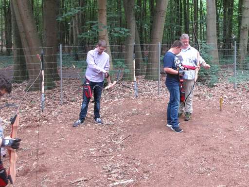 Nach der Ausrüstung mit Bogen und Pfeile im Köcher, dem Arm- und Fingerschutz gab es für alle Teilnehmer eine fachkundige Anleitung und die Möglichkeit sich auf Zielscheiben einzuschießen.