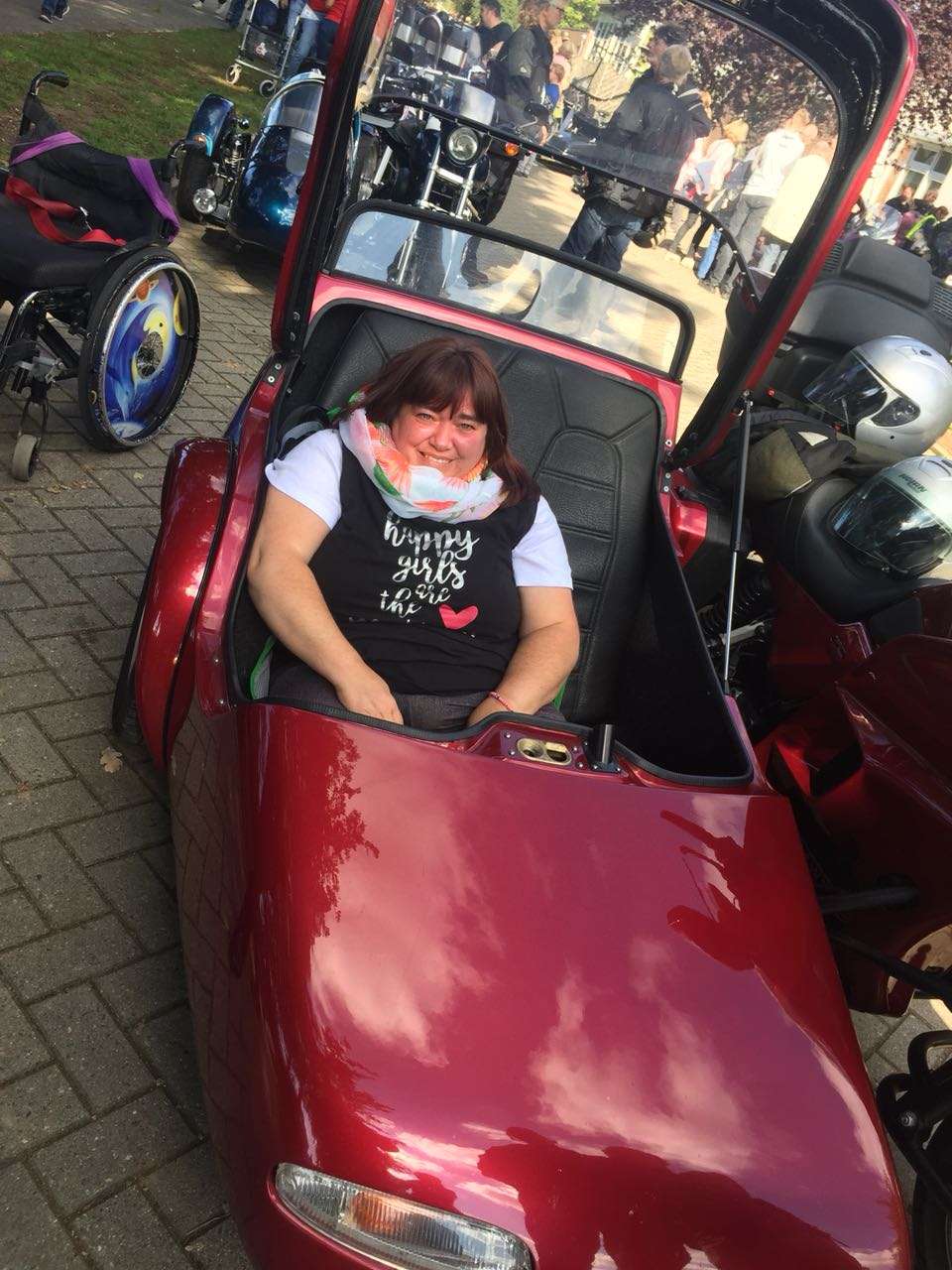 Manuela Sievering, Kundin des Ambulant Betreuten Wohnens von Vitus, nahm nun kürzlich am "Jumbo-Run" des Hauses Soteria in Emlichheim teil. Es handelt sich um eine Motorradausfahrt, teilweise mit Beiwagen, Trikes und Quads für Menschen mit einer Schädel-Hirnschädigung, neurologischen Schädigungen oder Personen, die auf einen Rollstuhl angewiesen sind. Bei schönem Spätsommerwetter und unter dem Applaus zahlreicher Zuschauer am Straßenrand setzte sich der Tross von mehreren hundert Motorradfahrern für die Ausfahrt in Bewegung.