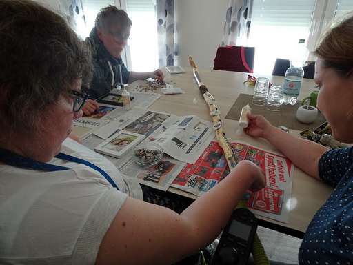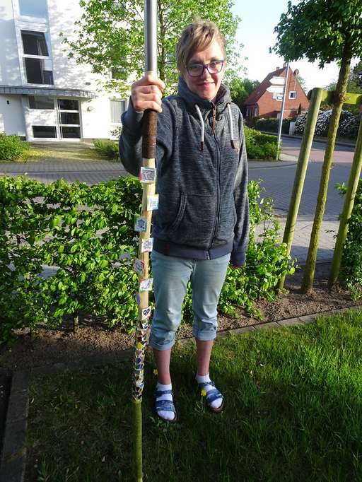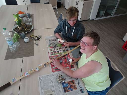 Die Kreativgruppe des Wohntrainings Deichstrasse traf sich, um unseren Pilgerstab für den ökumenischen Pfingstgottesdienst am 21.05.2018 zu gestalten.